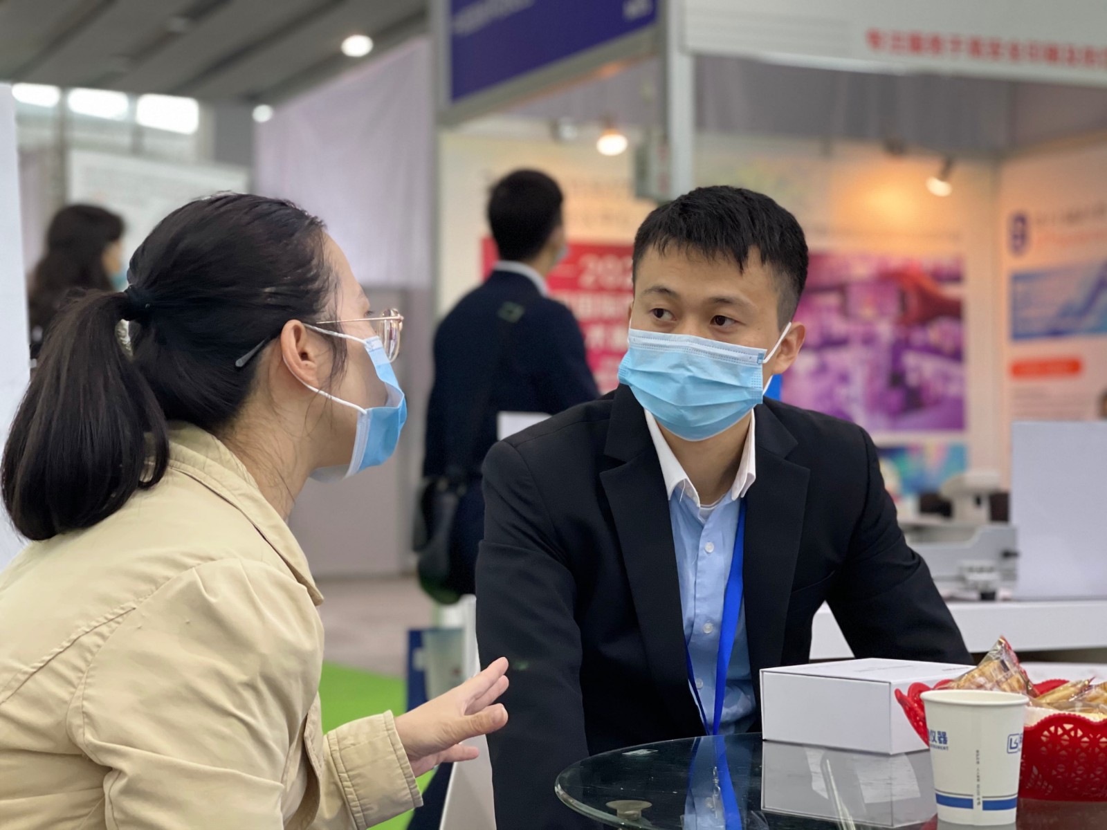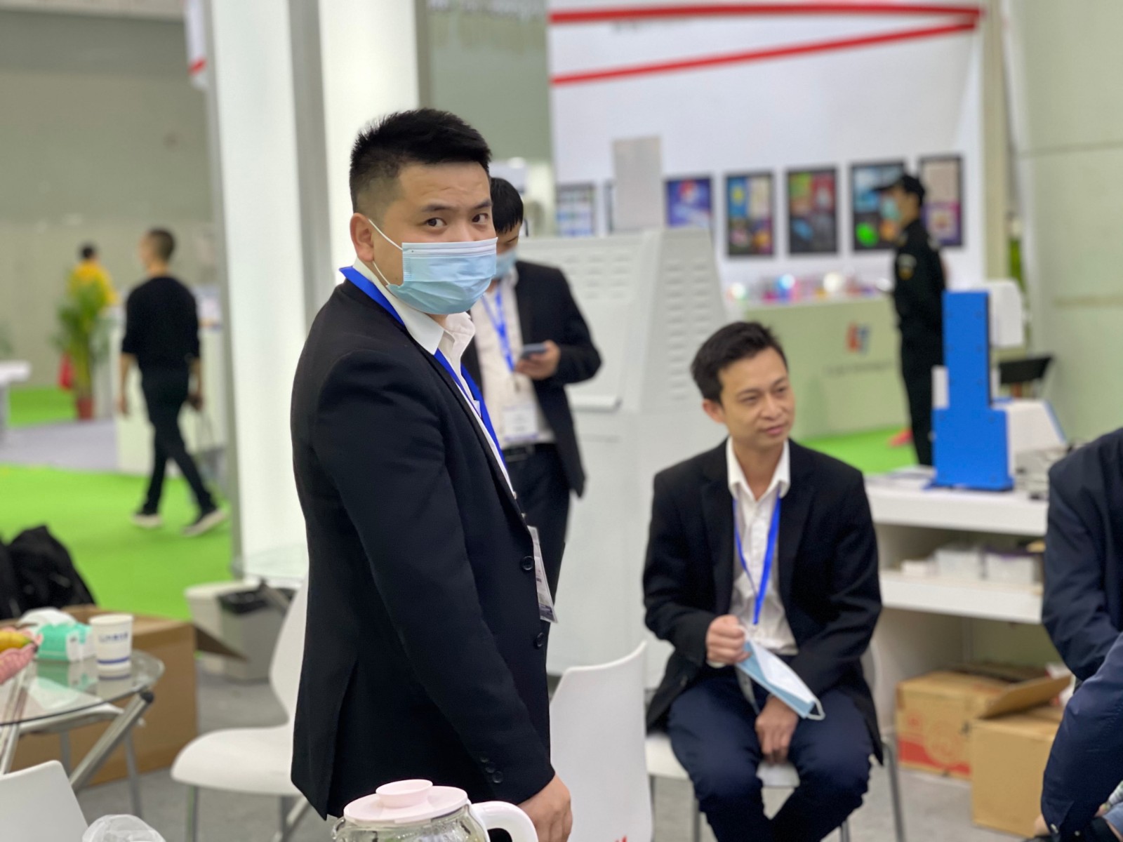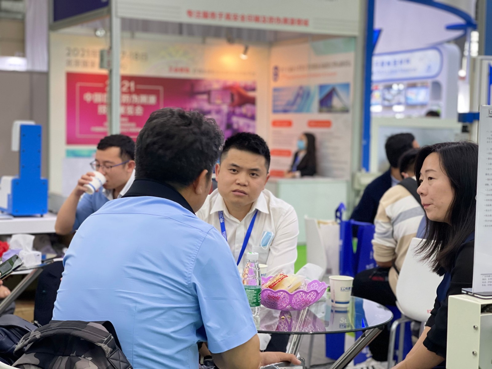 面對(duì)繁忙的展會(huì),休息時(shí)間還不忘等待客戶的到來(lái)