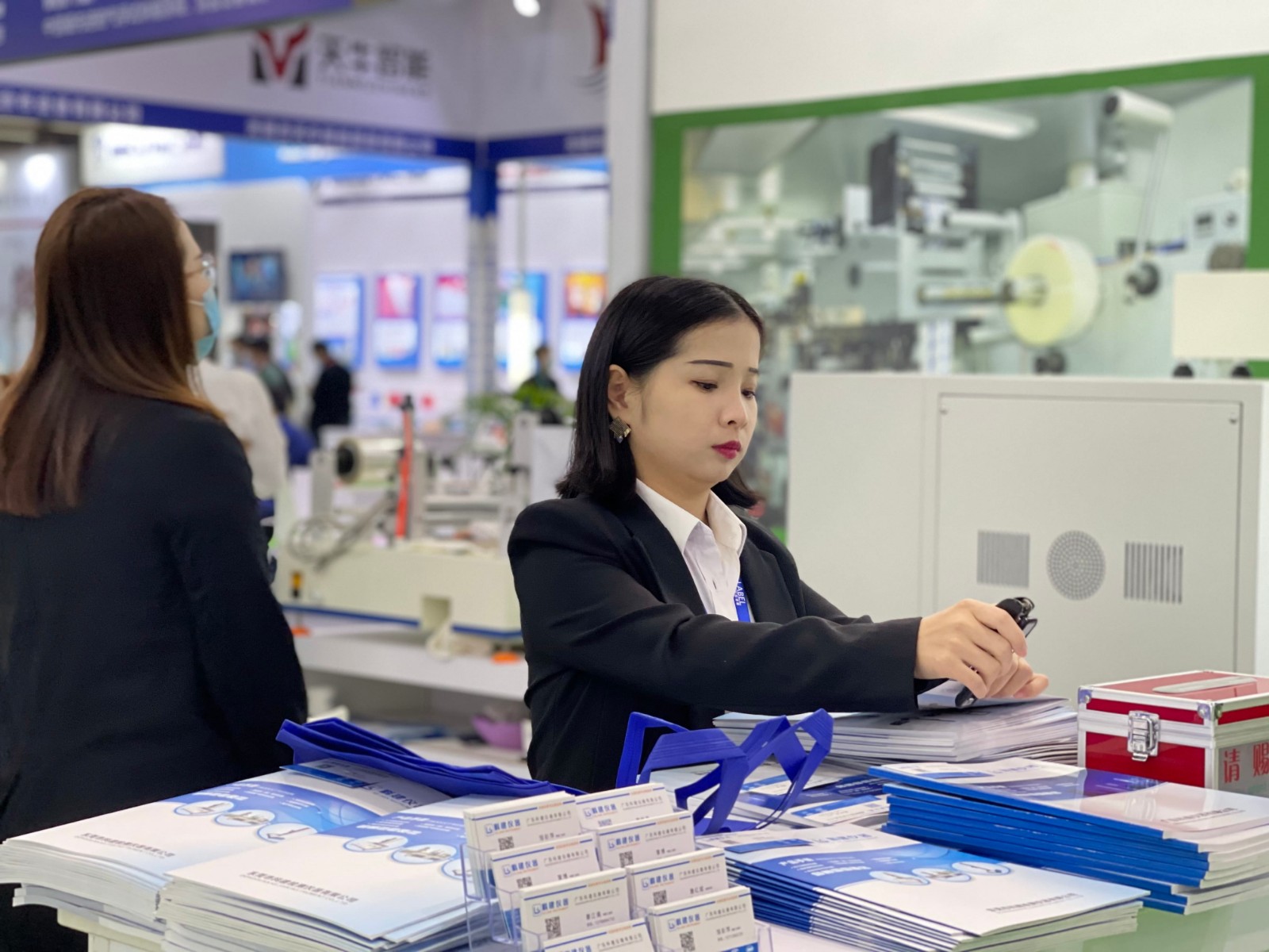 年輕貌美的覃小姐傾聽(tīng)客戶公司生產(chǎn)的產(chǎn)品