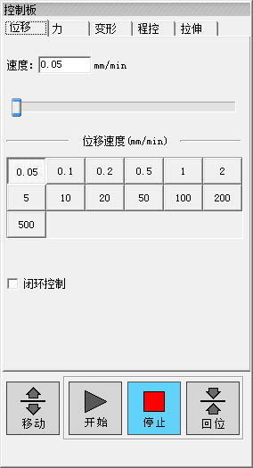 (5)支持多種控制方式,包括開環(huán)等速位移及等速力、等速應(yīng)力等多種閉環(huán)控制方式;并在高級(jí)操作者調(diào)試閉環(huán)參數(shù)過(guò)程中給出標(biāo)準(zhǔn)參考曲線,從而使用戶實(shí)際觀察到各參數(shù)對(duì)閉環(huán)效果產(chǎn)生的影響。