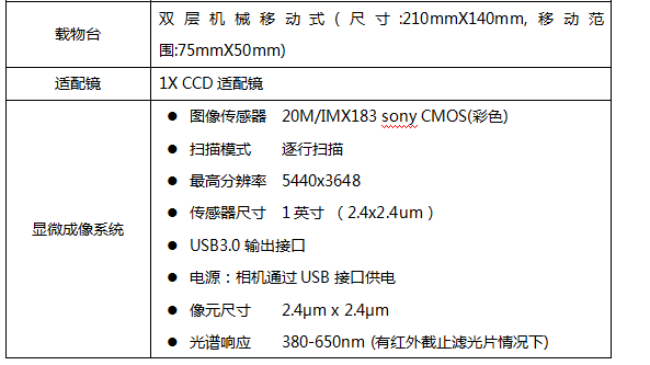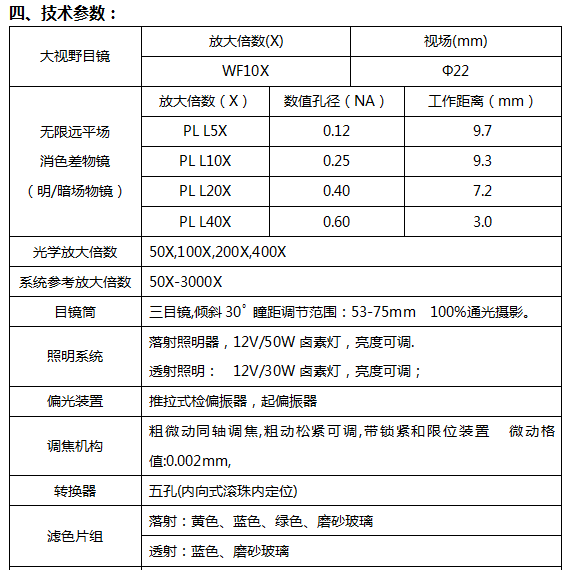 粗微動同軸調焦機構,粗動松緊可調,帶限位鎖緊裝置,微動格值:2μm。